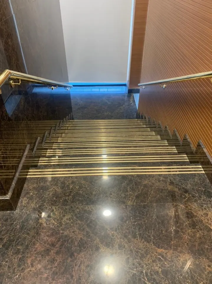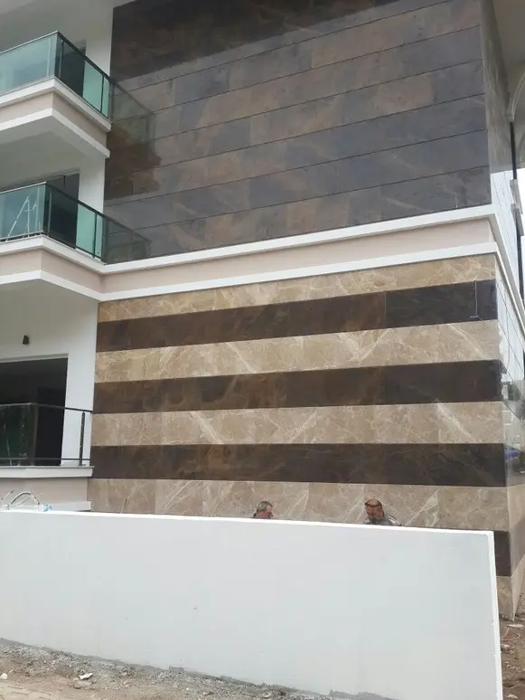Pasha Brown’ın çok yönlülüğü, yüzey işleme seçeneklerinde belirginleşir. Parlak cilalı yüzey, iç mekânlarda altın damarların derinliğini vurgularken; leather finish işlemi, dış cephe kaplamaları ve teras uygulamaları için kaymaz ve dokunsal bir yüzey sağlar. Bu esneklik, Pasha Brown’ı hem iç hem de dış mekân projelerinde güvenle kullanılabilir hale getirir.